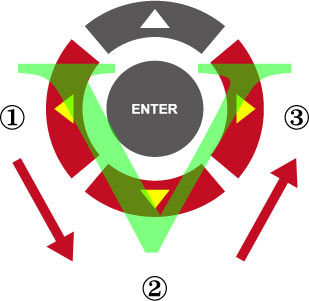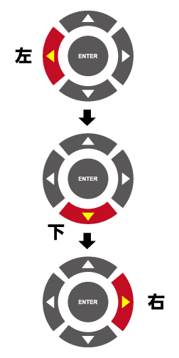 リモコンの十字キー(方向キー)の 左「←」を押す。 次に下「↓」を押す。 次に右「→」を押す。 |
