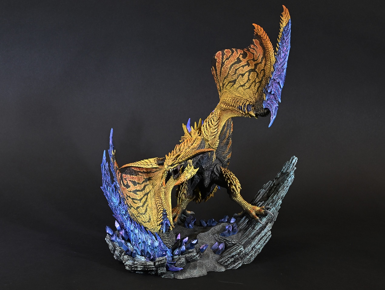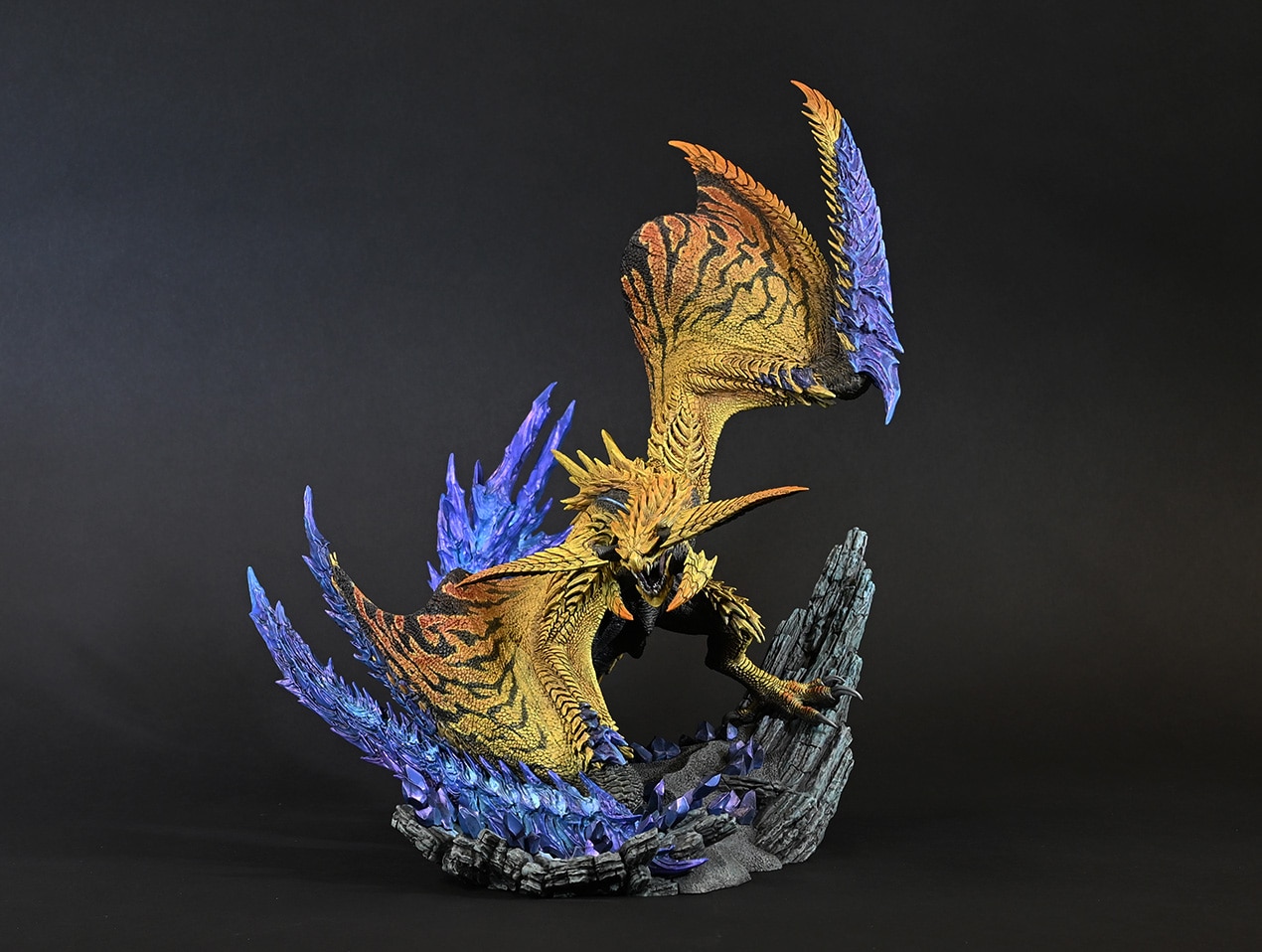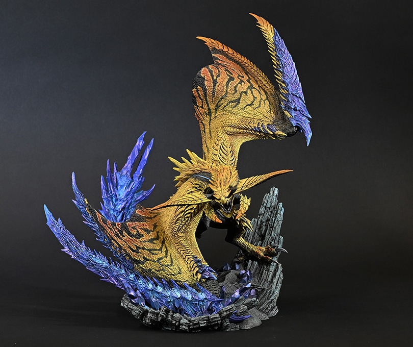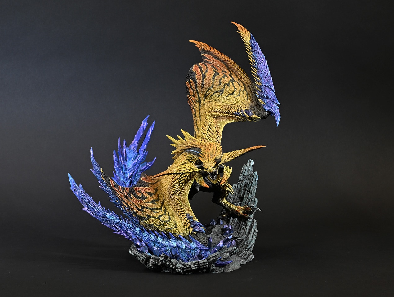 『モンスターハンターワイルズ』に登場する、「煌雷竜 レ・ダウ」がクリエイターズモデルシリーズにラインナップ! 雷のように台地を穿つ、大迫力の姿を立体化! 作中さながらの荒々しく荒涼とした動きのある鱗や台座は観る角度によって表情が変わり、 「蒼雷晶」を纏った翼や尾は質感の違いと鋭く大胆な造形が楽しめます。