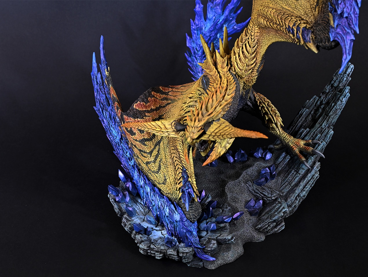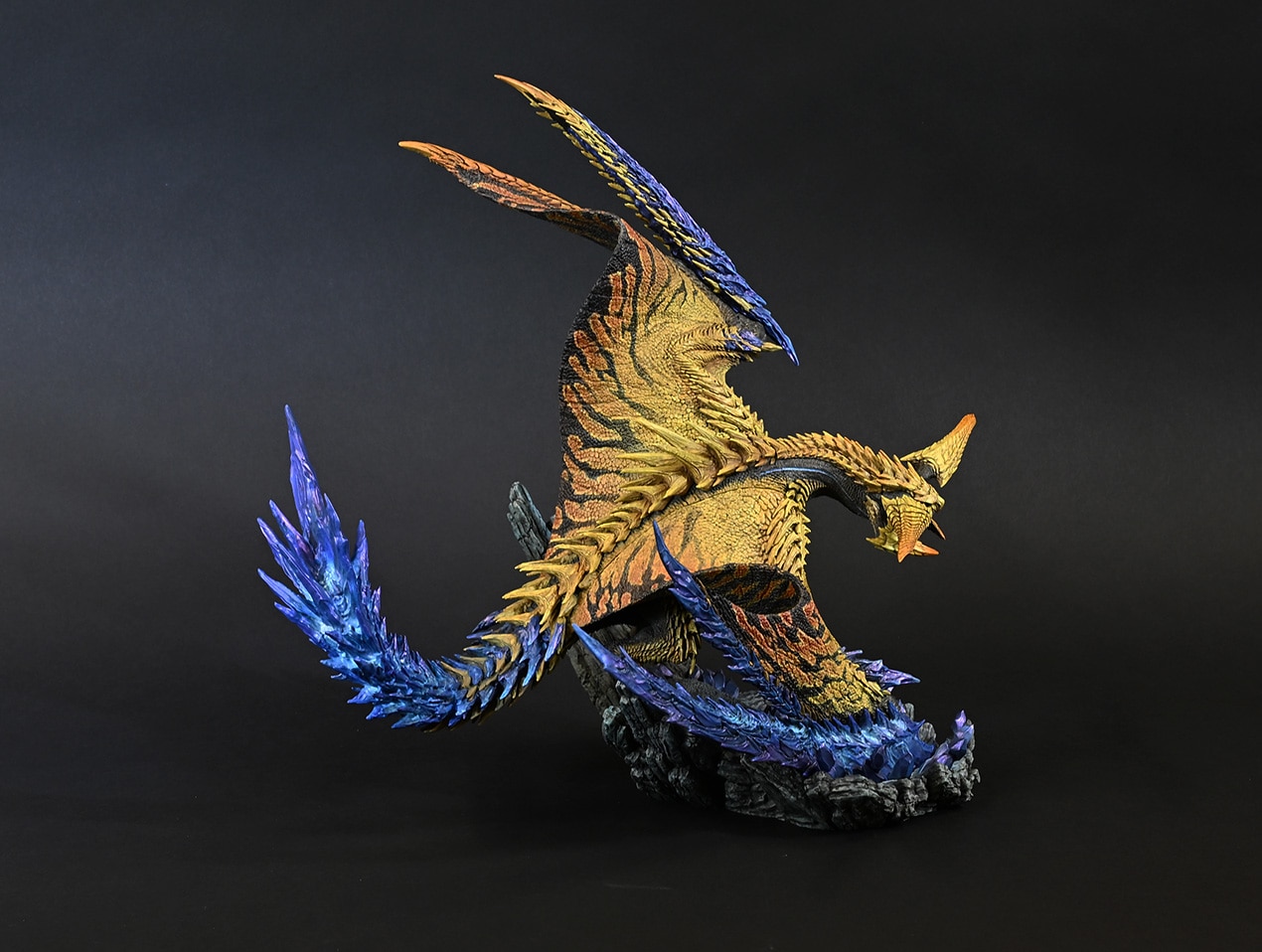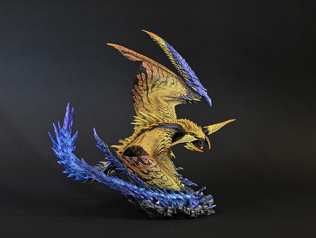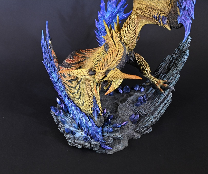 『モンスターハンターワイルズ』に登場する、「煌雷竜 レ・ダウ」がクリエイターズモデルシリーズにラインナップ! 雷のように台地を穿つ、大迫力の姿を立体化! 作中さながらの荒々しく荒涼とした動きのある鱗や台座は観る角度によって表情が変わり、 「蒼雷晶」を纏った翼や尾は質感の違いと鋭く大胆な造形が楽しめます。