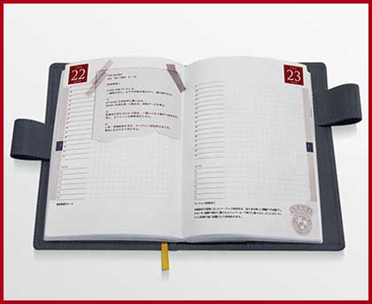 月曜スタートの12ヶ月カレンダーと、日記帳代わりにもなるデイリー予定表、そしてメモページと、大ボリュームのノートが付属!そのページ数は、なんと464ページ。