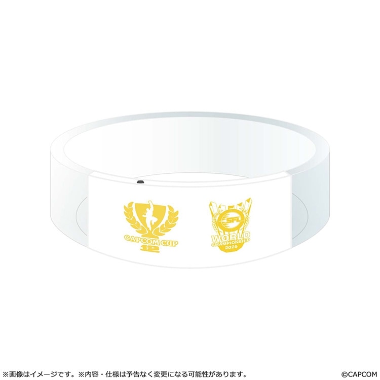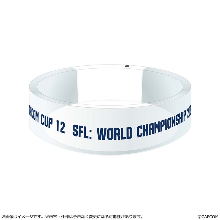 「CAPCOM CUP 12」ロゴと「ストリートファイターリーグ: ワールドチャンピオンシップ 2025」ロゴをプリントしたバングルライトです。