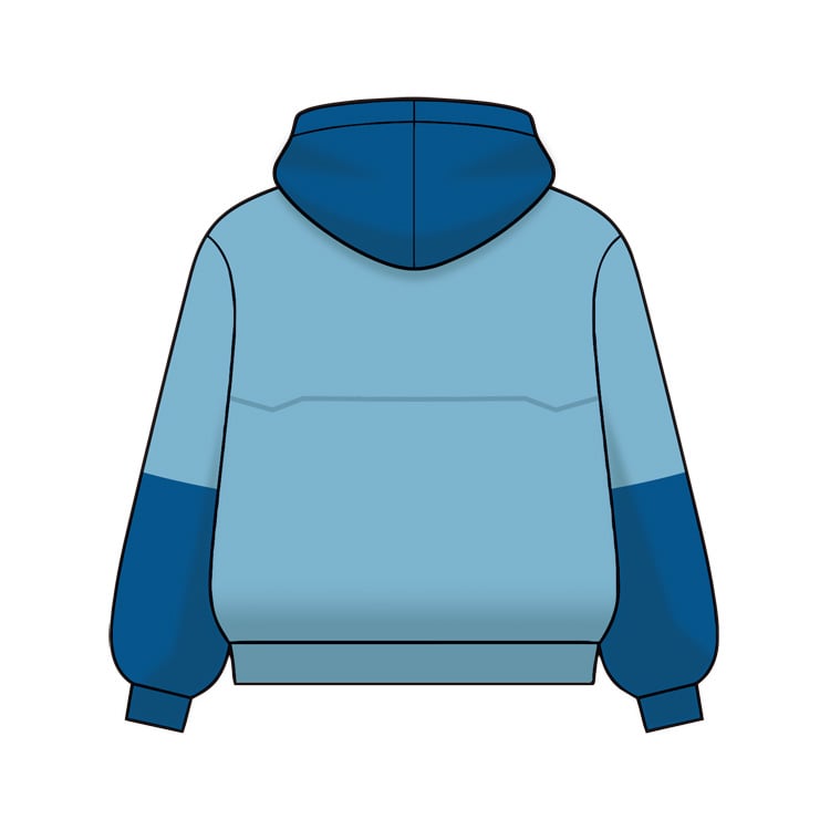 ロックマンのカラーをイメージした青と水色のバイカラーと、胸や腕に入るマーキング風のデザインでクールに着こなせます。
