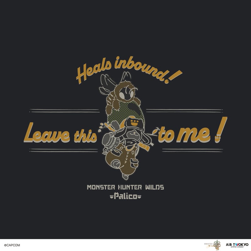 『モンスターハンターワイルズ』シーンイラストTシャツ 3(アイルー&回復ミツムシ)スミクロ M|CAPCOM公式通販サイト